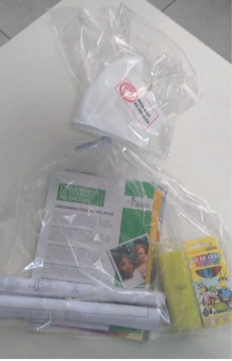 Além disso, será entregue às famílias assistidas pelo CRAS um kit informativo, educativo e lúdico contendo folheto explicativo de como os pais devem prevenir os filhos do uso de drogas, lícitas e ilícitas, além da distribuição de máscaras de proteção facial com o logo da campanha.