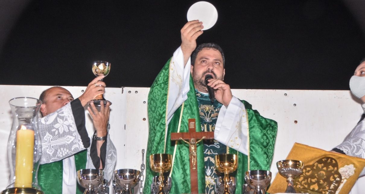 Padre Walterlei: Nós contamos com a colaboração das diversas equipes da paróquia. Além das equipes, temos nossos benfeitores que nos ajudam, por exemplo, emprestando o caminhão, a energia elétrica. Os carros, ao chegar no local, são organizados em filas, direcionados todos para o presbitério, onde acontecerá a missa.