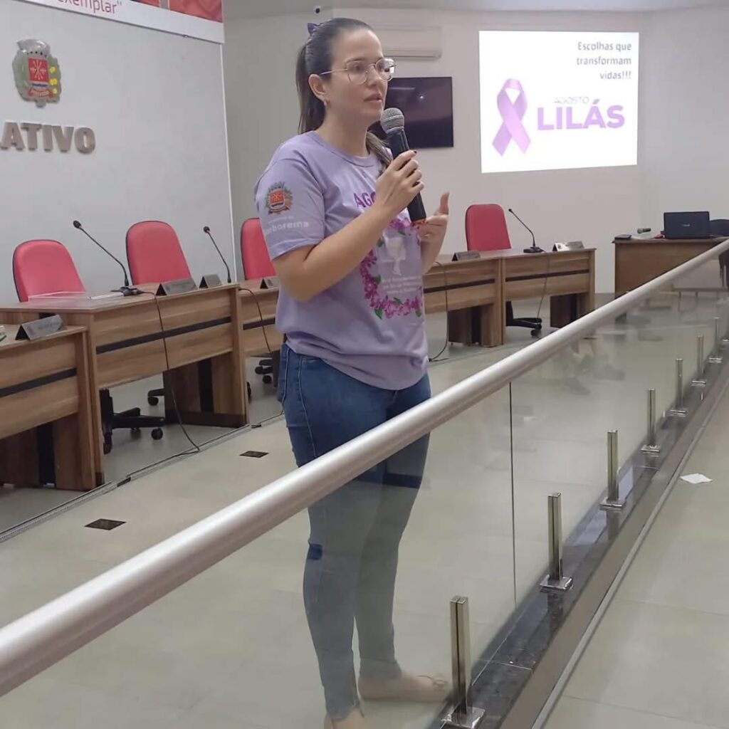 A palestra foi conduzida por Maria Otília Marques da Silva, assistente social, com o tema: “Agosto Lilás – Escolhas que Transformam”.