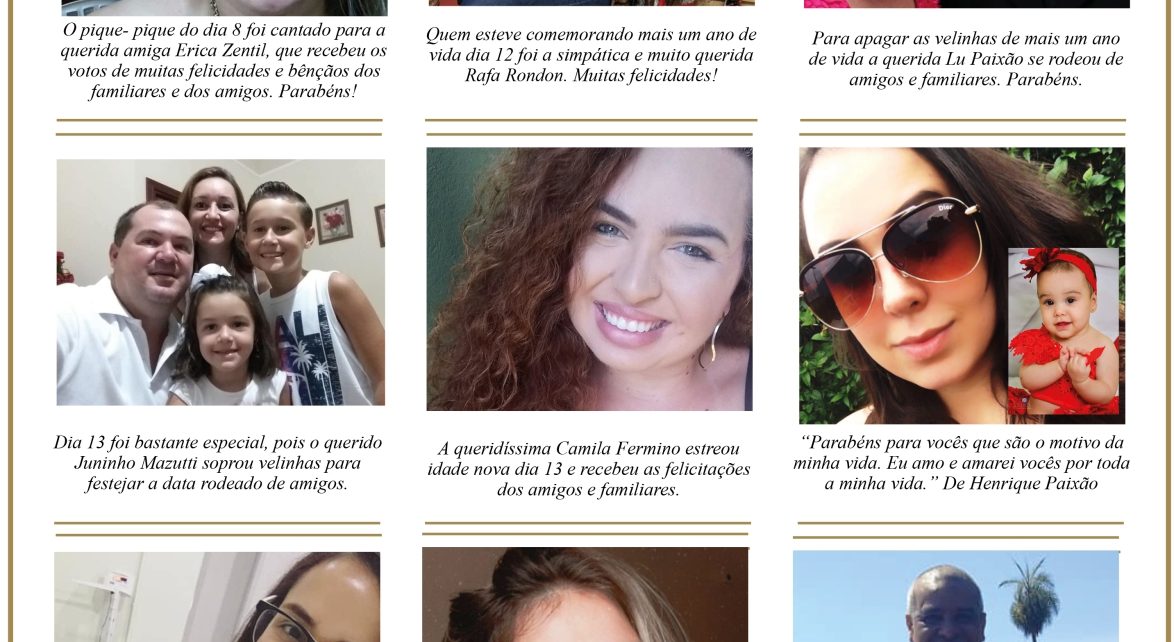 Neguita Bertolo Gomes – 16/12 Fernando Masutti – 16/12 Ivanilda Lorenceto Buzato – 16/12 Jefferson e Lívia Correia – 15/12 Alan Fonseca – 17/12 Camila Forjaz Presotto – 17/12 Aline Zanotto Evangelista – 18/12 Kamila Vessoni Da Cruz – 18/12 Taisa Zanchetta – 18/12