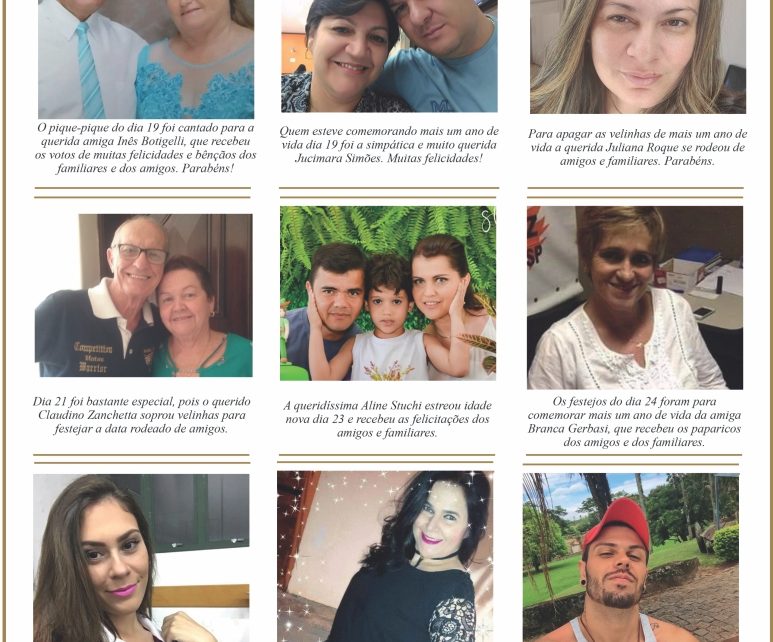 Inês Botigelli – 19/01 Jucimara Simões – 19/01 Juliana Roque – 20/01 Claudino Zanchetta -21/01 Aline Stuchi – 23/01 Branca Gerbasi – 24/01 Rafaela Penitente – 25/01 Lucia Ferreira – 25/01 Zé Augusto – 25/01